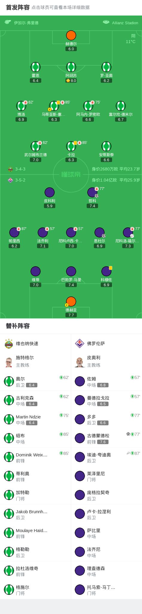 佛罗伦萨客场3-0维也纳快速,恩杜尔、哲科、古德蒙德松建功
