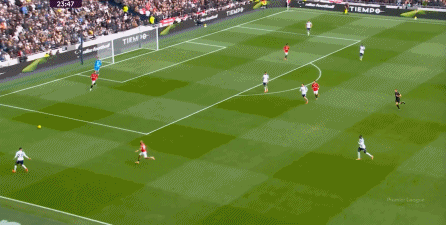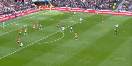 于是在下半场回来之后,热刺确实提高了进攻强度,出脚的时机大大提前,开始将压力直接甩到曼联后卫的身上: